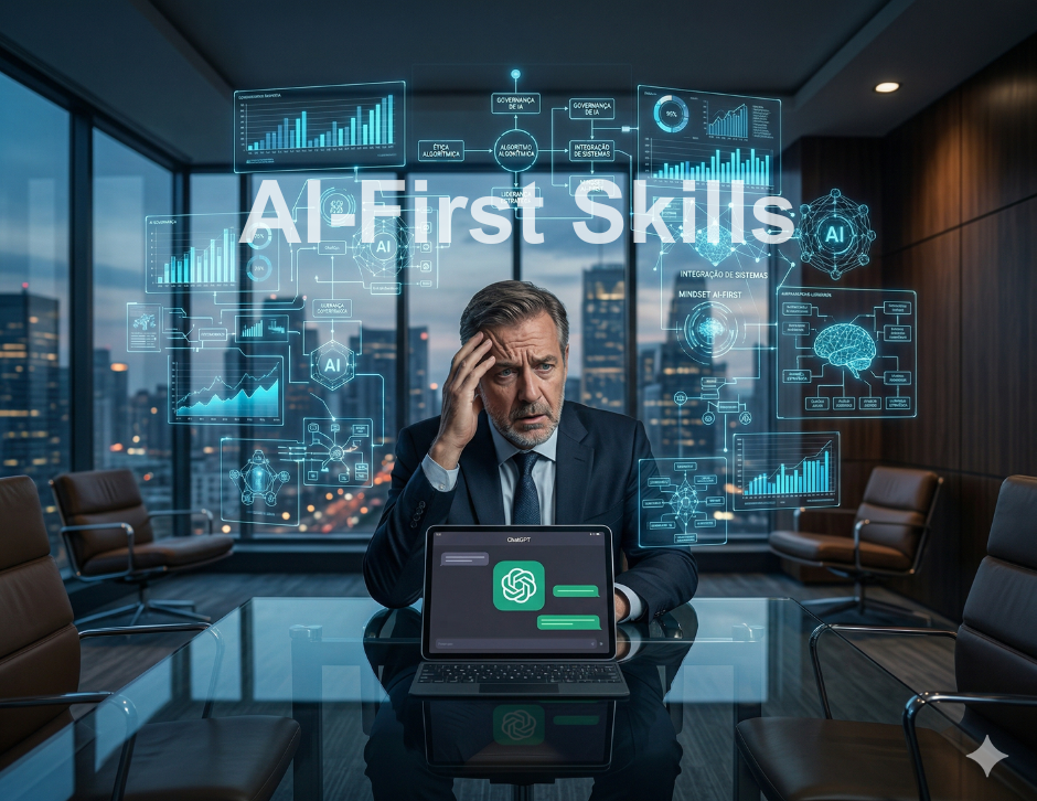 O que o mercado está buscando — e, para ser sincero, está até desesperado para encontrar — são profissionais que possuam as chamadas AI-First Skills. E não se trata de saber programar redes neurais, mas de ter a capacidade estratégica de gerir o risco ético e a integração de sistemas autônomos no fluxo da empresa.